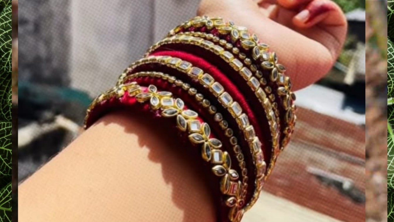 Luxury Maroon Silk Thread Kundan Bridal Bangle Set